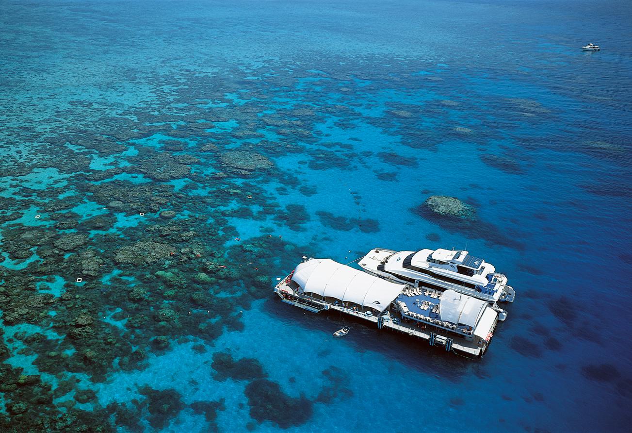 抵达后,可乘绿岛独有的玻璃底船,毫发不湿地观赏美丽的大堡礁或在教练带领下享受浮潜的乐趣,也可懒洋洋地躺在白沙