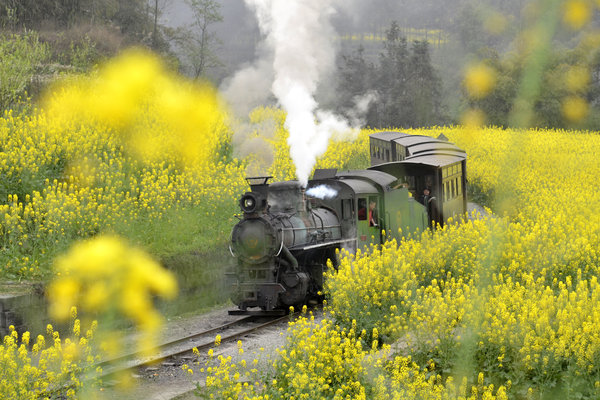 简介:在四川省犍为县,目前依然运行着被称为“18世纪工业革命活化石”的老式窄轨蒸汽机车。嘉阳小火车属于老式窄轨蒸汽机车,在犍为县已有近半个世纪的运行历史。1958年,为解决煤炭运输难问题,嘉阳煤矿(四川嘉阳集团前身)修建了总长19.84公里的芭蕉沟至石溪铁路,并于1959年7月12日正式通车。由于其轨距为76.2厘米,仅为普通列车轨距的一半,因此也被称为“寸轨”火车。通车初期,小火车客货混装,主要运煤,兼带载人;20世纪60年代初开始客货分装,每列煤车后面加挂两三节客车;自1978年开始,小火车实行客货分开专列,每天6趟运行;20世纪90年代初,芭蕉沟老矿区的煤采完后,小火车改为完全客运,目前已成为老矿区的生活专线,每天4趟运送着山里山外的职工、家属和当地的村民。目前,每年有大量国内外蒸汽机车爱好者到此参观。2006年4月18日,四川省乐山市政府将其列为工业遗产加以保护。