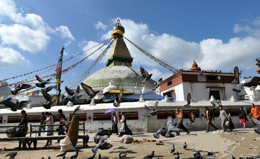 早餐后告别博卡拉, 返回加德满都,行程约5小时前往南亚最大的佛塔、藏传佛教的圣地,俗称“小西藏”的博达哈大佛