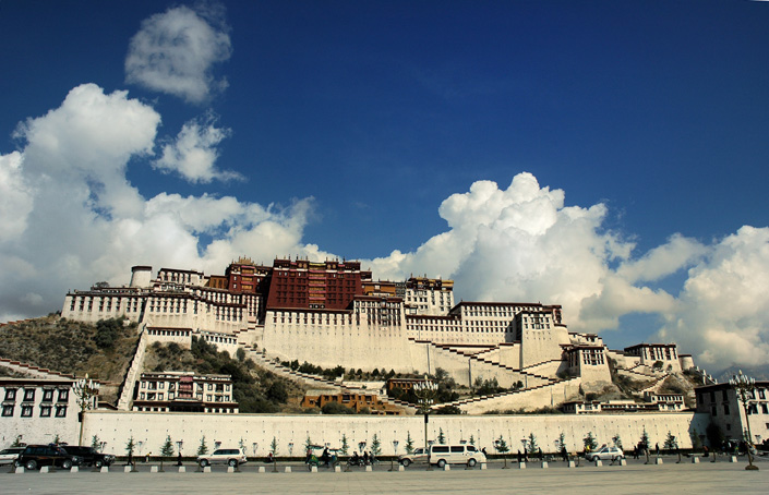上午参观世界上海拔最高的古代宫堡式建筑群——有“高原明珠”之称的★布达拉宫(时间约1个小时),它始建于公元七世纪,共13层约119米高,自五世达赖喇嘛以来一直是西藏的政治和宗教中心。主要分为白宫(历代达赖寝宫)与红宫(历代达赖灵塔殿与各式佛寺)两大部分;布达拉宫珍藏着历辈达赖喇嘛真身的金质灵塔和大量珍贵的壁画、唐卡、佛像,是藏民族文化的集中体现。