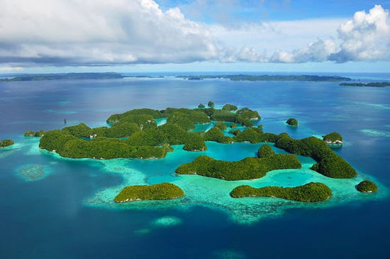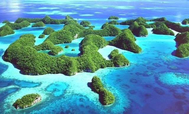 帕劳不仅以海底景观闻名于世,属于海洋学家公认的世界七大海底奇观之首,海面景观也同样令人赞叹。它的海水共有7种不同的颜色,让每一个见过它的游客都赞叹不已。究其原因,是由于帕劳的海水清澈无污染而其海底景观造型奇特,一会儿是黑黑的礁石,一会儿是斑斓的软硬珊瑚,抑或是细细沙砾,还有远古时代沉积的火山灰,这一切都被清澄的海水毫无保留地映上了海面,于是就有了这养眼的色彩。据说,世界上很多广告公司都选择到这里来拍广告片。