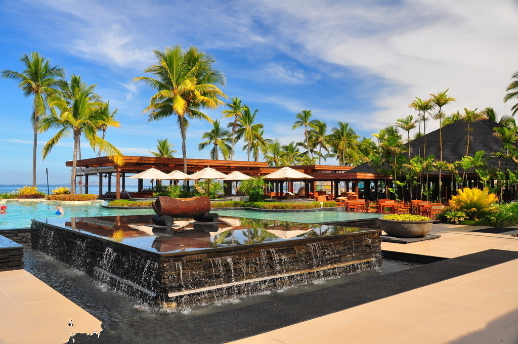 长滩是一处经常在各类广告镜头中出现的胜地。渐行渐近,长滩那绝美的气势扑面而来,蔚蓝色的宽阔洋面上,两个孤独的绿色小岛间,一条优美的彩虹状月白色弧线划过。午后赤道上强烈的阳光,使沙白得耀眼,令人不敢正视。而大海似乎吞噬了骄阳的锐利,敞开自己深邃的胸怀,蓝得彻底、蓝得干净、蓝得大气、蓝得没有一丝一毫的怯懦。