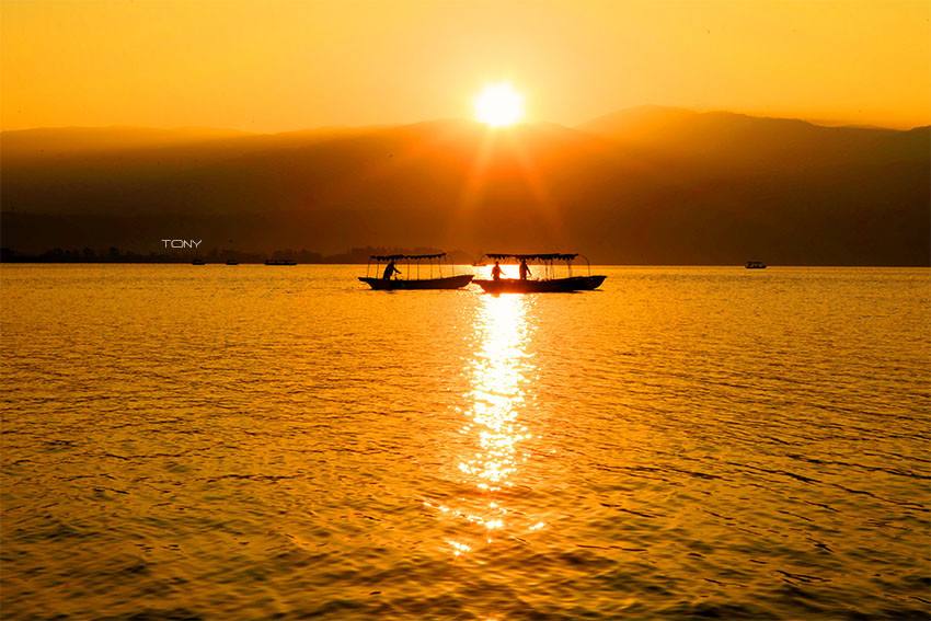晨曦中拍摄日出湖面的美丽瞬间,听湖上飘来动人的情歌。